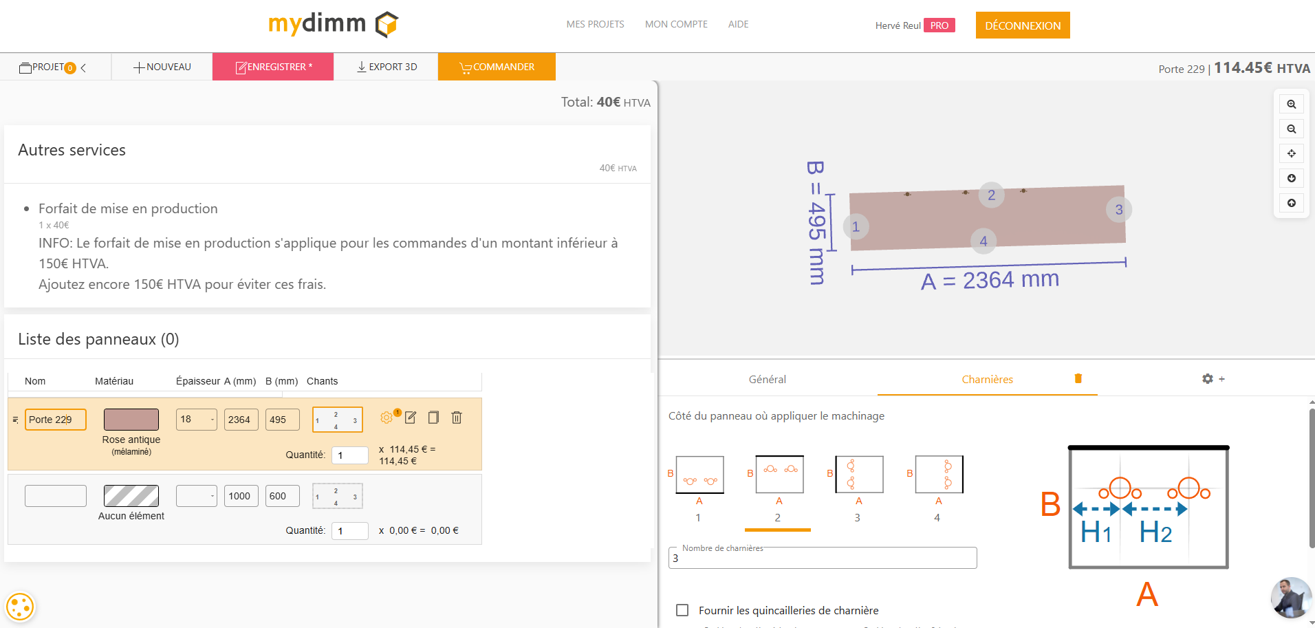 Dans ce cas-ci, vous avez déjà un projet composé de différents meubles. A ces derniers, vous désirez ajouter quelques panneaux avec finitions.
